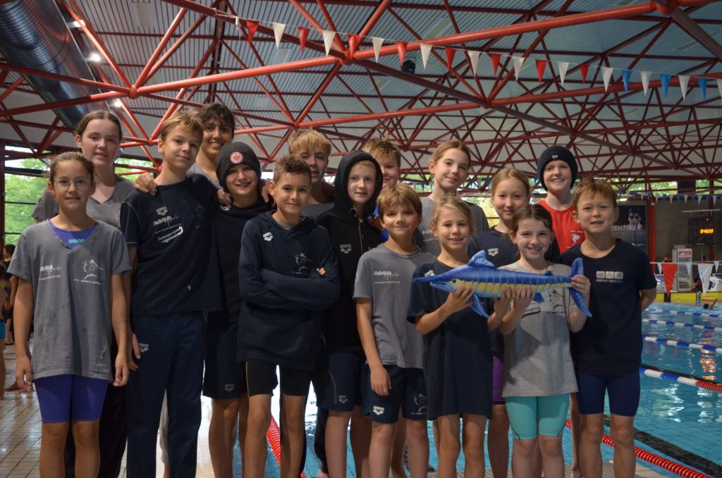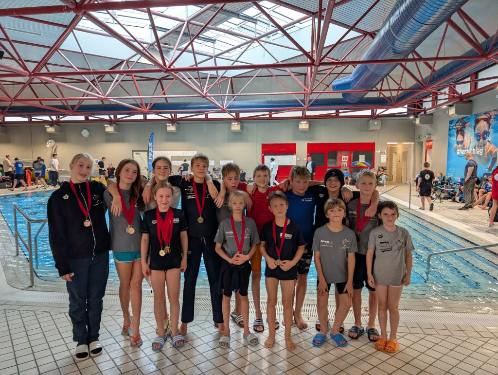 Neben den üblichen Einzelstarts hatten wir für diesen Wettkampf auch 3 Staffeln gemeldet. Die 4x50Lagen weiblich gewannen Freya, Tara, Sophie und Jennifer souverän in 2:42,52. Die 4×50 Lagen männlich gewannen Samuel, Jonathan, Julien und Vitja in 2:41,69. Zu guter Letzt gewannen auch Vitja, Philipp, Henrik und Samuel ihre 4×50 Freistil in 2:17,58. Damit haben wir alle 3 Staffeln gewonnen, in denen wir angetreten sind. Das ist für den Teamspirit sehr gut.